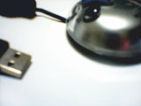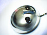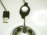 ケーブル巻取り装置のついた光学式マウスで、別名「宇宙人マウス」。その名のとおりリトルグレーを髣髴とさせる小さなボディは、外側に透明プラスチックをまとっている。通常作業で使うにはあまりにも小さ過ぎる感は否めないが、ノートパソコンで使用するには重宝するだろう。ケーブルも非常に薄い。かつてのMacマウスと同じく、どの方向を握っているのかわかりづらいのは円形マウスの宿命か。 |